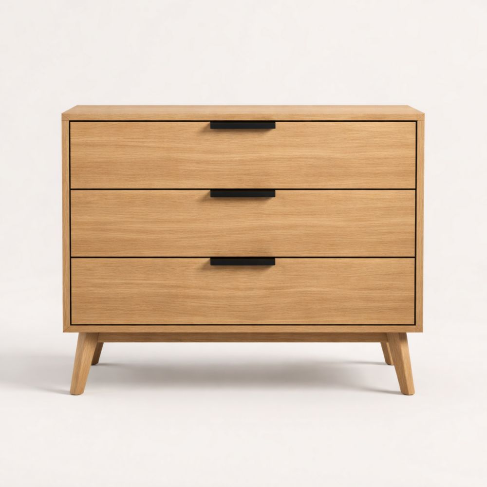 Cassettiera con 3 cassetti in legno di quercia
