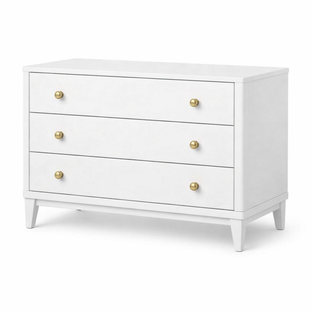 Cassettiera in MDF Bianco con Maniglie Ottone
