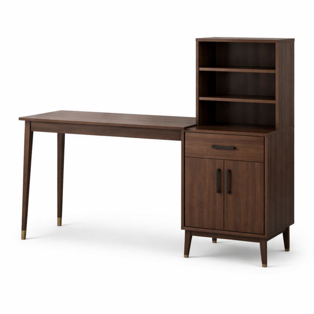 Scrivania ad Angolo con Libreria in Legno Marrone