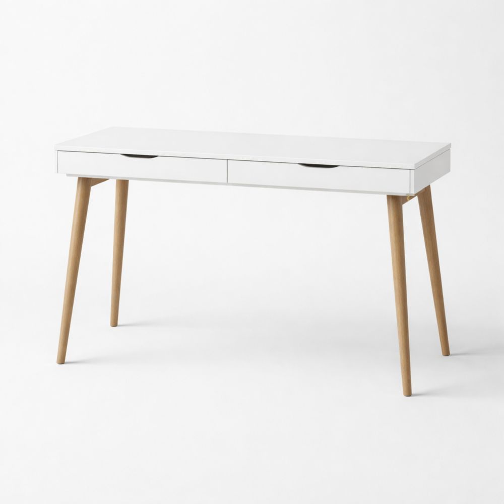 Scrivania in MDF Bianco con Gambe in Legno 120x45x75 cm