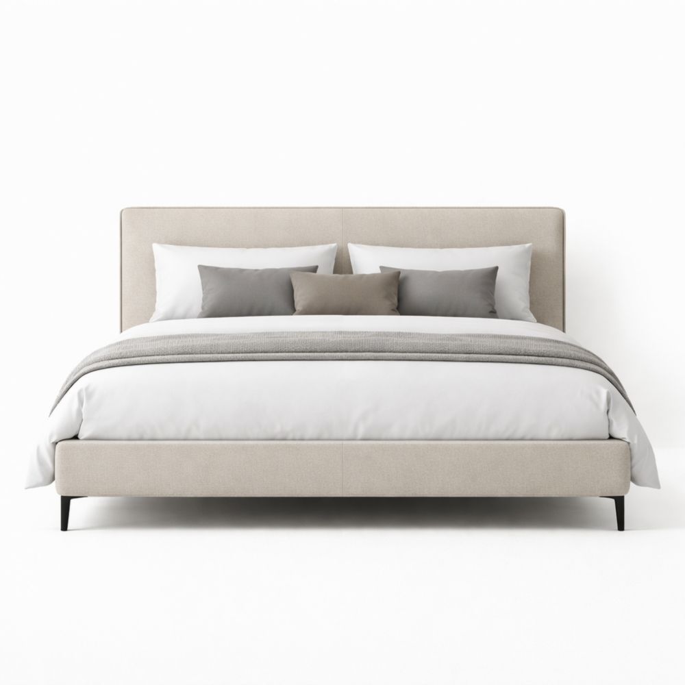 Letto matrimoniale in legno e tessuto beige 200x160 cm