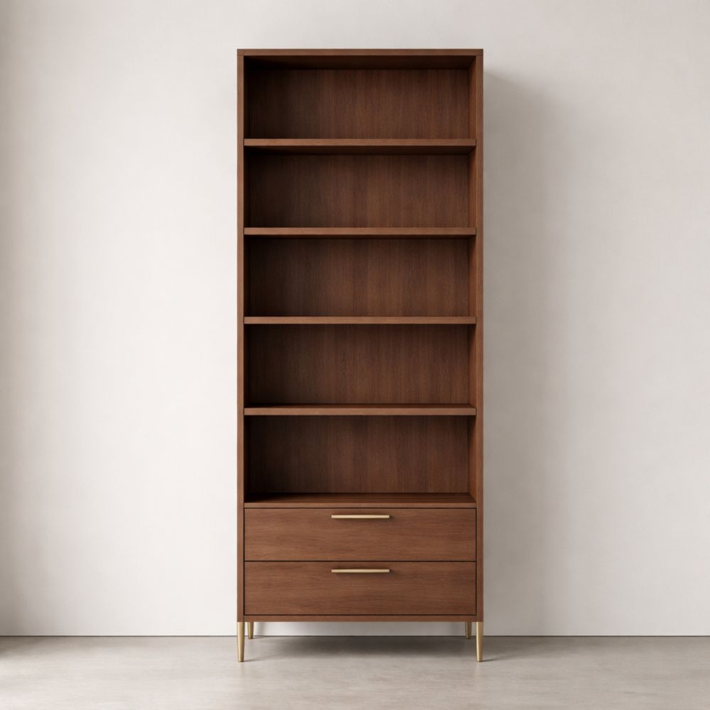 Libreria in Legno di Noce con 5 Ripiani e 2 Cassetti