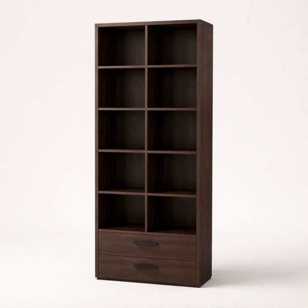 Libreria in Legno Marrone con Scomparti e Cassetti