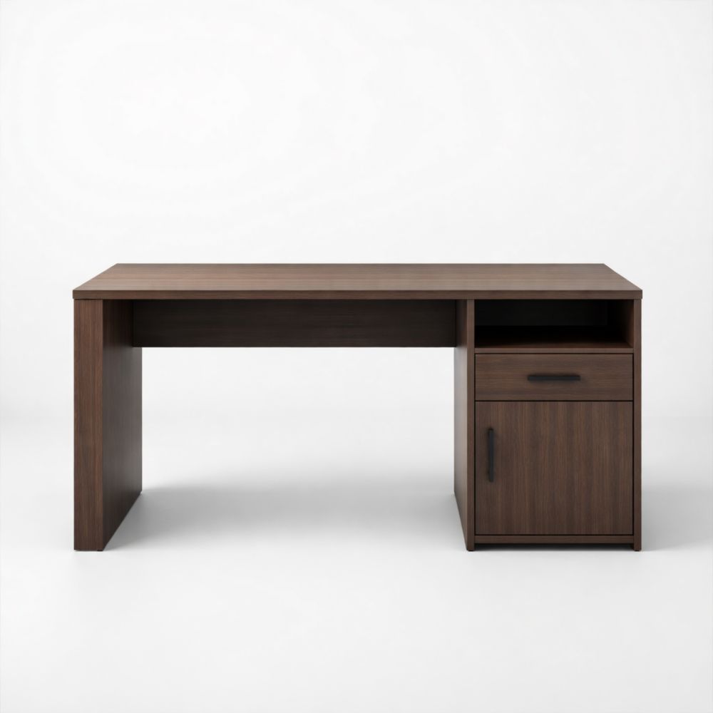 Scrivania da Ufficio in Legno Marrone con Cassetto e Anta, 140x60x75 cm