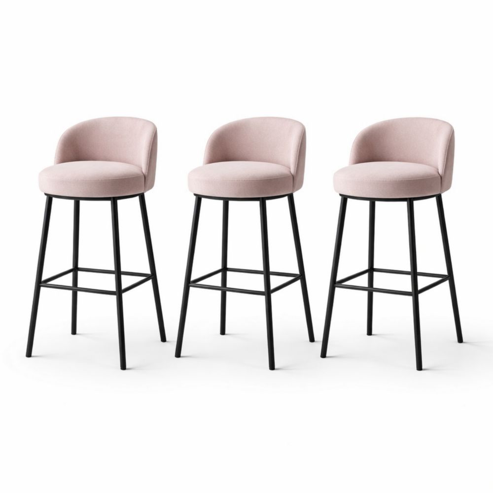 Set di 3 sgabelli da bar in tessuto rosa con struttura in metallo nero