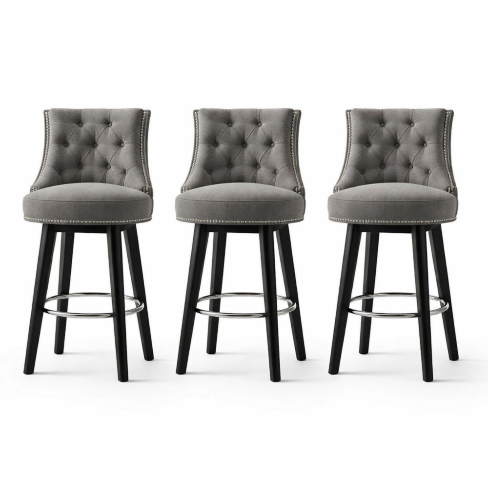 Set di 3 sgabelli girevoli in tessuto grigio con gambe in legno nero