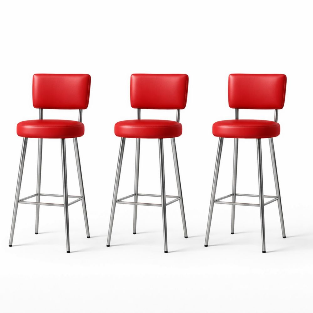 Set di 3 sgabelli in metallo e finta pelle rossa
