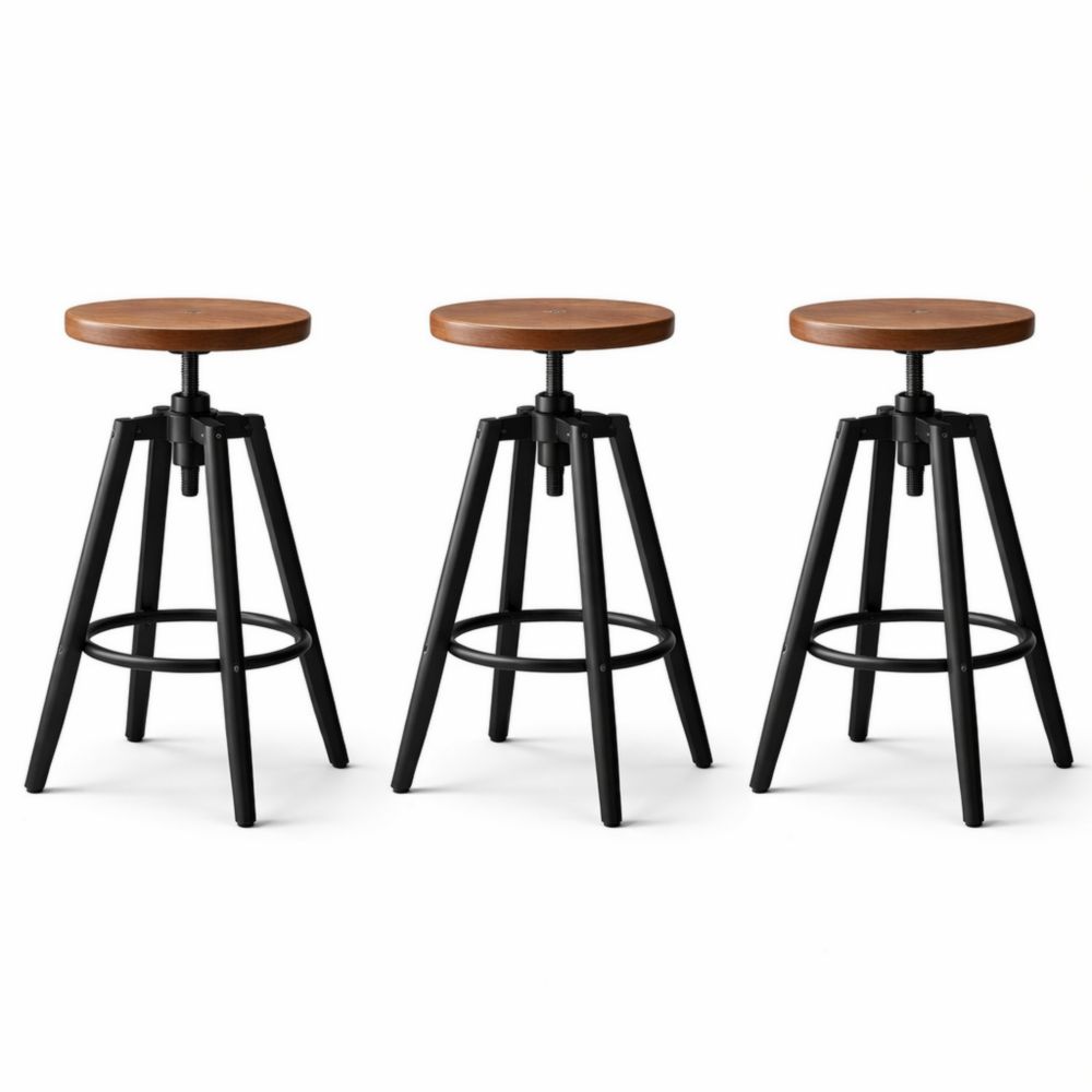 Set di 3 sgabelli regolabili in legno e metallo nero